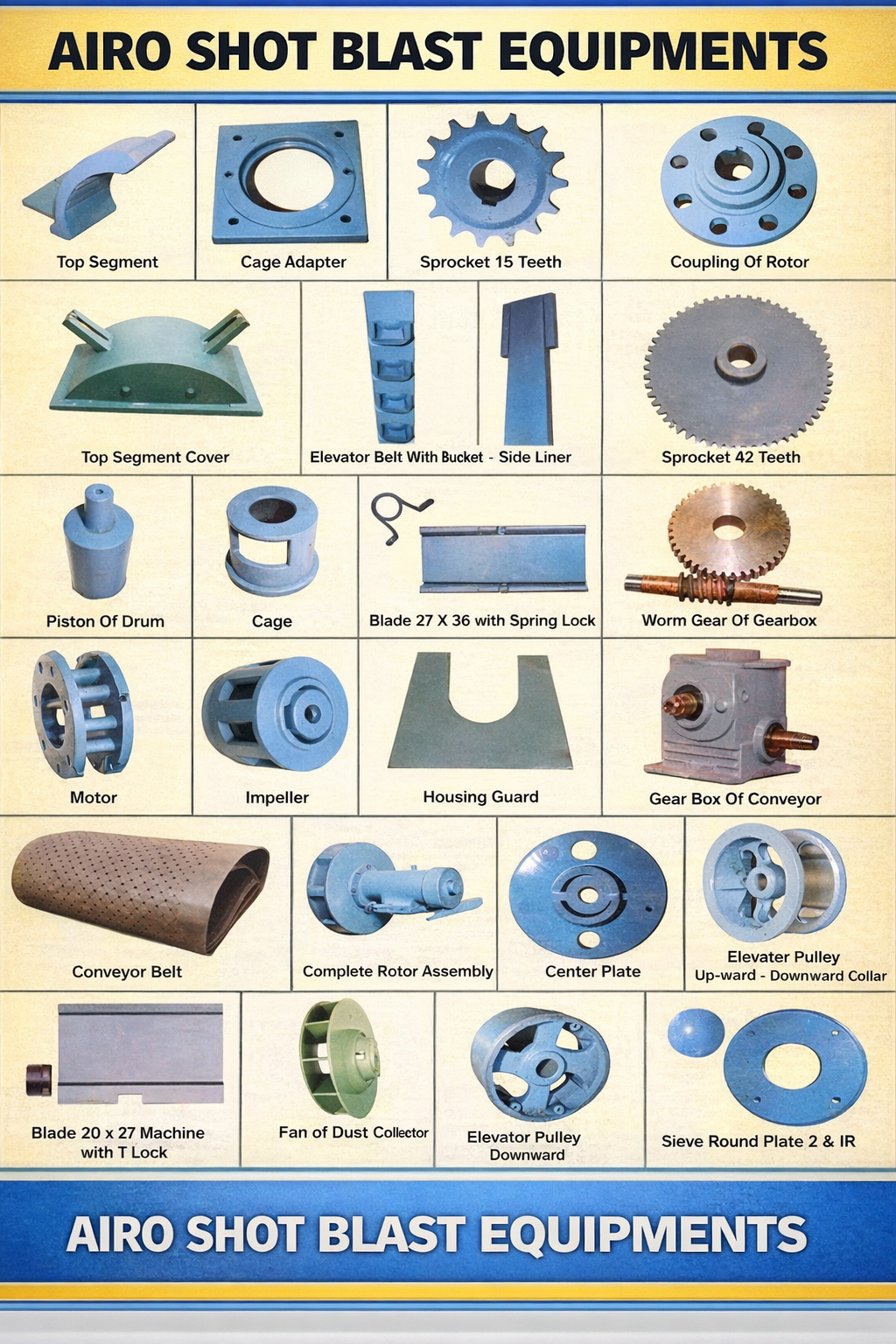 As a trusted manufacturer, Airo Shot Blast Equipments provides high-quality spare parts designed for durability, efficiency, and long operational life.